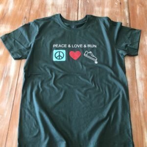 Camiseta unissex Peace Love Run Verde