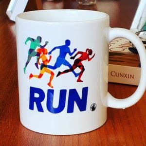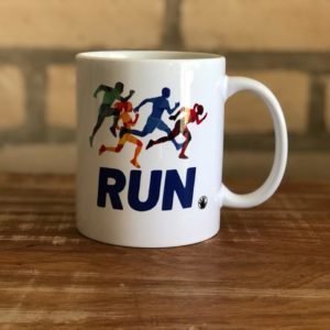 A Caneca branca RUN traz uma imagem inspiradora para sairmos correndo depois daquele cafezão!